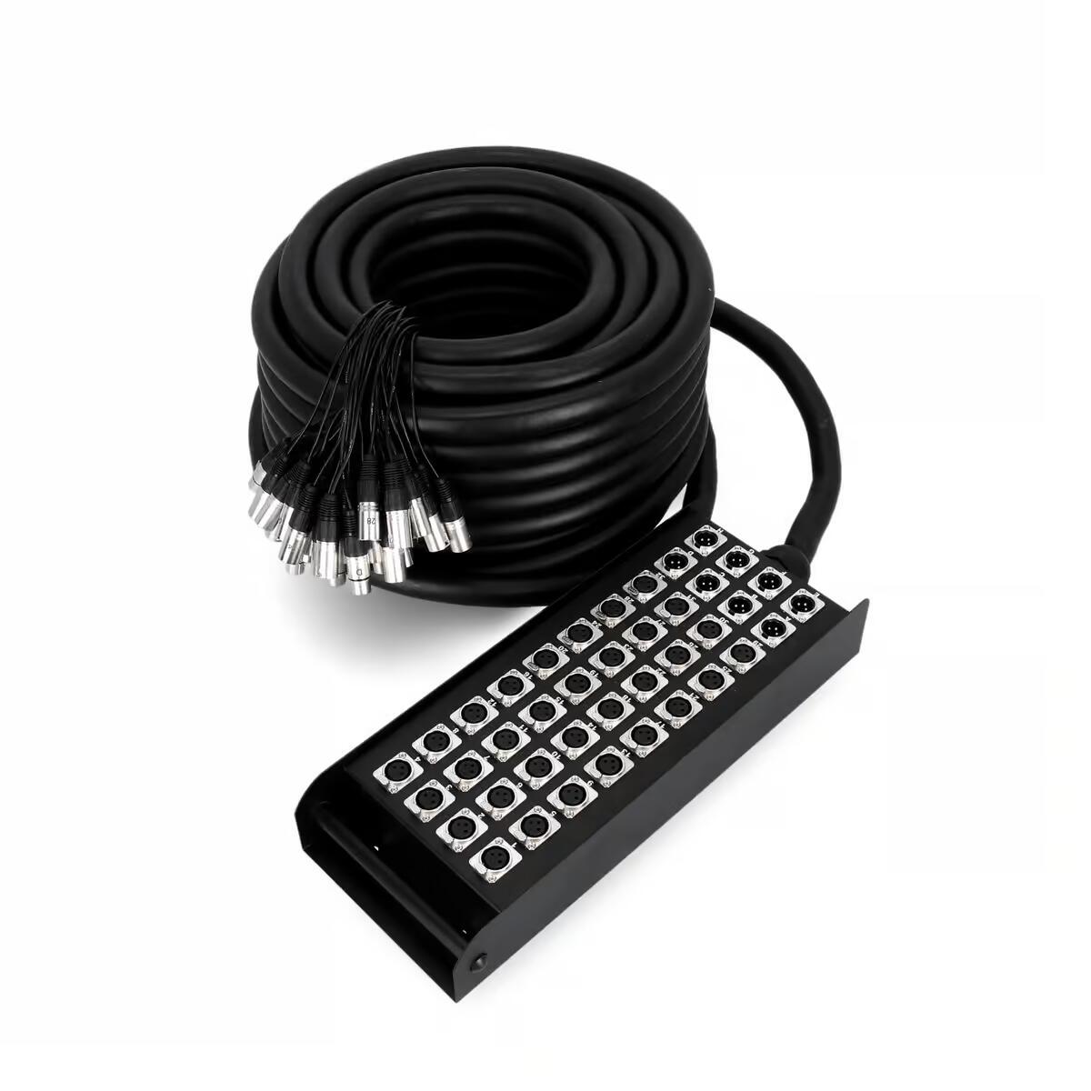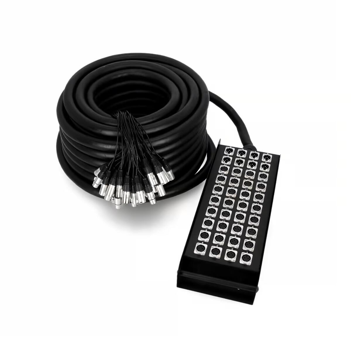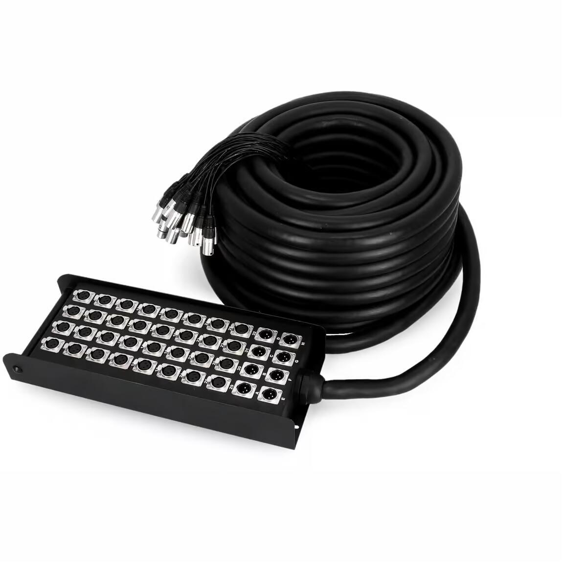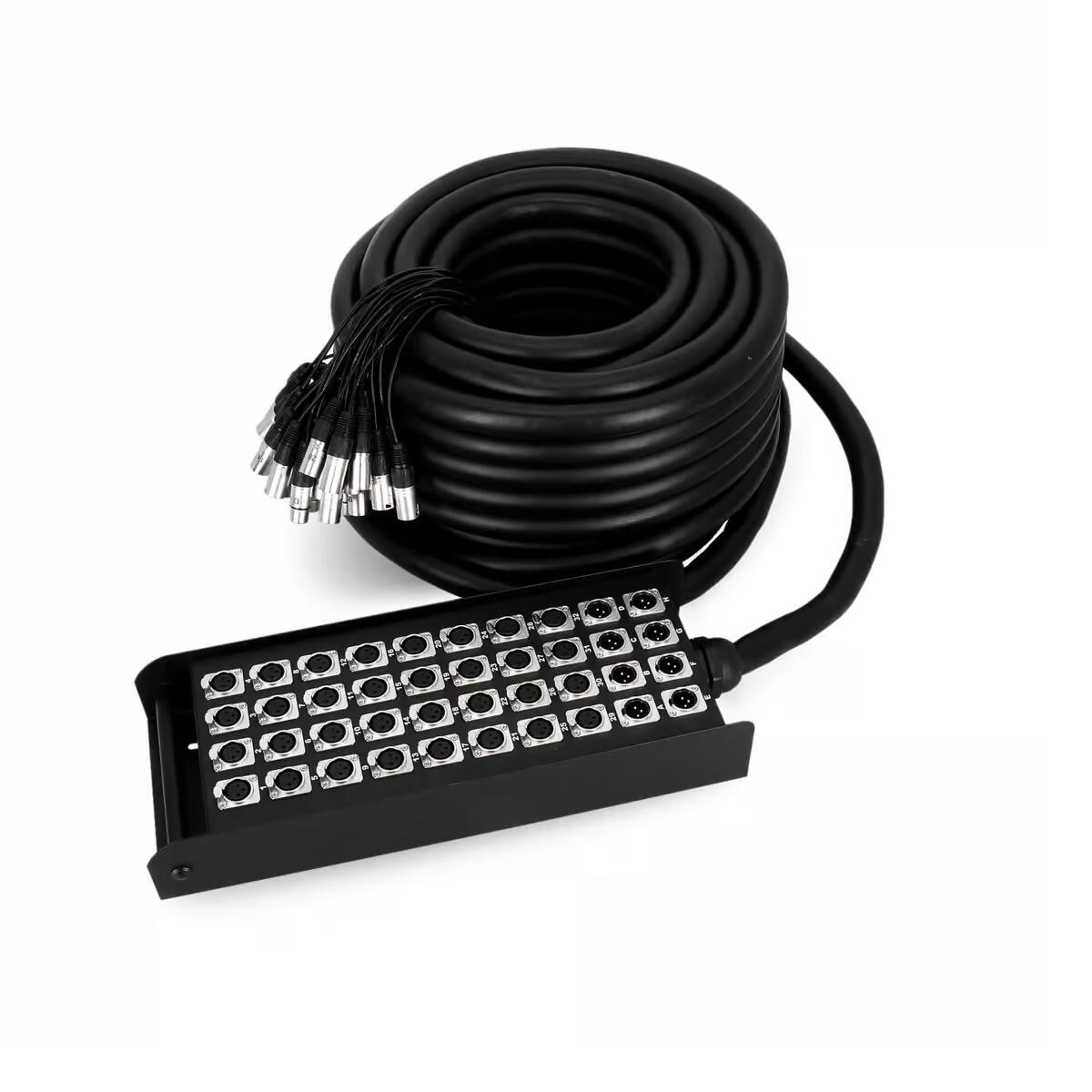 Corpo resistente in lamiera d'acciaio con rivestimento a polvere nero e maniglia integrata. Tutte le prese e i connettori sono dotati di finitura in metallo. Multicore di alta qualità con codice numerico sullo splitter.