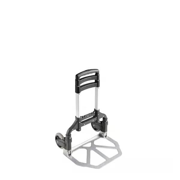 Questo carrello portapacchi è ideale per il trasporto agevole di attrezzature pesanti e oggetti, durante le esibizioni o a casa. La struttura in alluminio, solida e leggera, può essere ripiegata fino a raggiungere dimensioni compatte per lo stoccaggio. Il carrello portapacchi ha una portata di 45 kg e una maniglia estensibile e bloccabile e ruote in gomma iniettata TPR con cuscinetti a sfera del diametro di 110 mm.