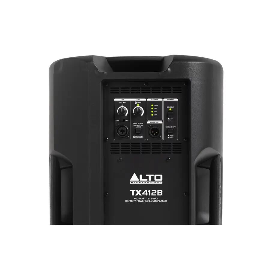 L’Alto Professional TX412B è un diffusore attivo a batteria ricaricabile (fino a 10 ore di autonomia) ideale per eventi all’aperto e per qualsiasi situazione in cui non sia disponibile l'alimentazione elettrica. Offre una potenza di 600W di picco (300W RMS), un Max SPL di 120dB @ 1m e una risposta in frequenza dai 70Hz ai 20kHz. Equipaggiato con un woofer da 12” con bobina da 2” e un driver a compressione da 1” in titanio, assicura un suono potente e definito. Dispone di mixer a 2 canali, ingressi per microfono, linea e Bluetooth, e connettività TWS per collegare due unità in modalità wireless. Peso: 13.3 kg.