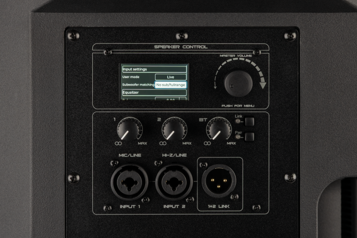 Il pannello posteriore offre due ingressi combo XLR/jack. Uno di questi accetta sia segnali a livello di microfono che di linea, mentre l’altro supporta sorgenti Hi-Z come le chitarre elettriche. È disponibile un’uscita XLR bilanciata per il collegamento a diffusori aggiuntivi; questa uscita combina gli ingressi analogici e il segnale audio BT.