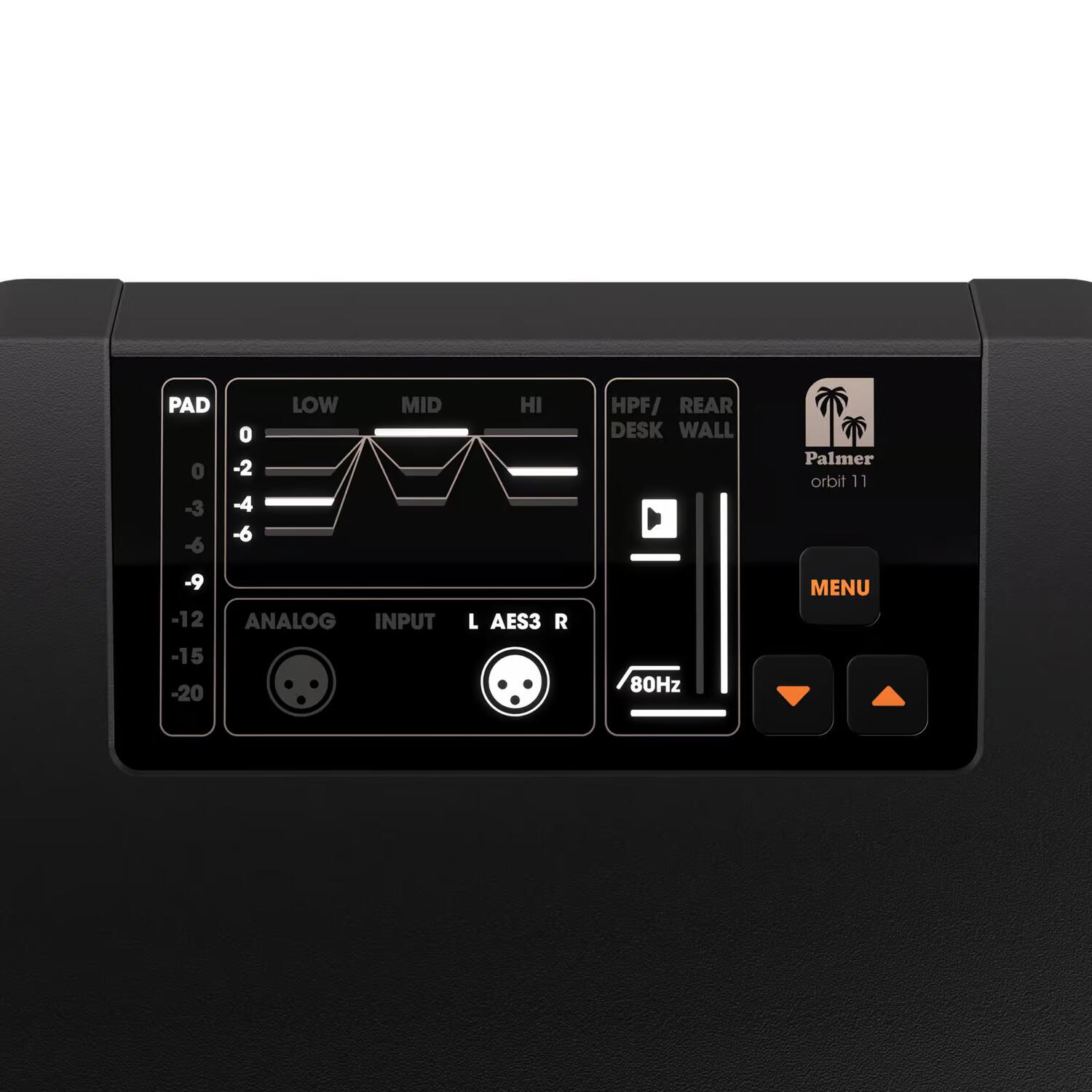 Palmer ORBIT 11 è un monitor da studio attivo coassiale a 3 vie progettato per il mixaggio, il mastering, la post-produzione, il sound design, il broadcasting e la creazione di contenuti. Il suo design coassiale con sorgente davvero puntiforme combina un driver mid-range da 6,5″ e un tweeter da 1″ su un unico asse acustico e offre una dispersione costante di 120° × 120° per un'immagine stabile e un equilibrio affidabile in tutta l'area di ascolto.