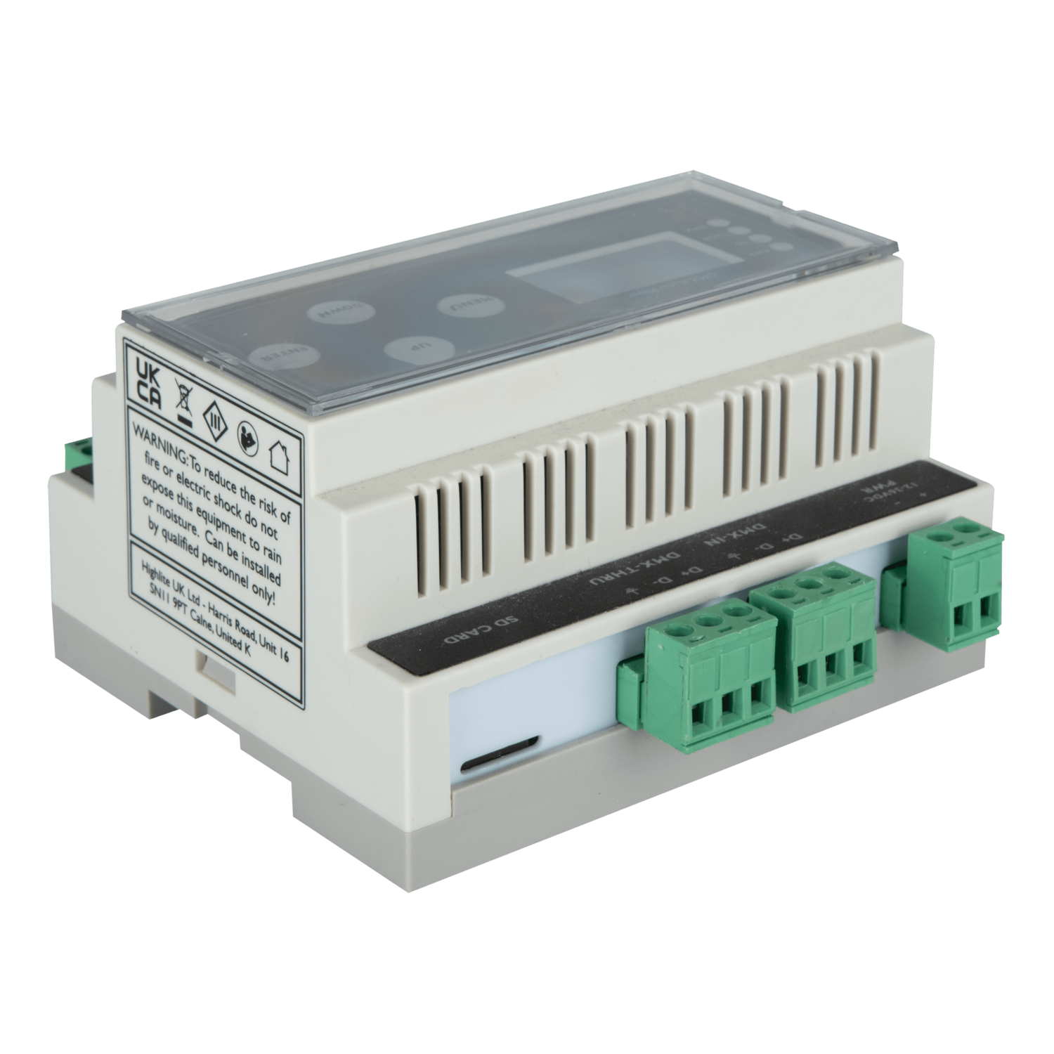 Il Melodist Install di Showtec è un lettore multimediale WAV controllabile via DMX da montare su guida DIN. Riproduce file WAV stereo da una scheda micro SD tramite due uscite bilanciate. Ha una modalità trigger e una modalità player. Le impostazioni e le modalità di riproduzione possono essere regolate utilizzando il display LCD del pannello frontale e i pulsanti di controllo. Quattro LED indicano lo stato del lettore e dei segnali di controllo.