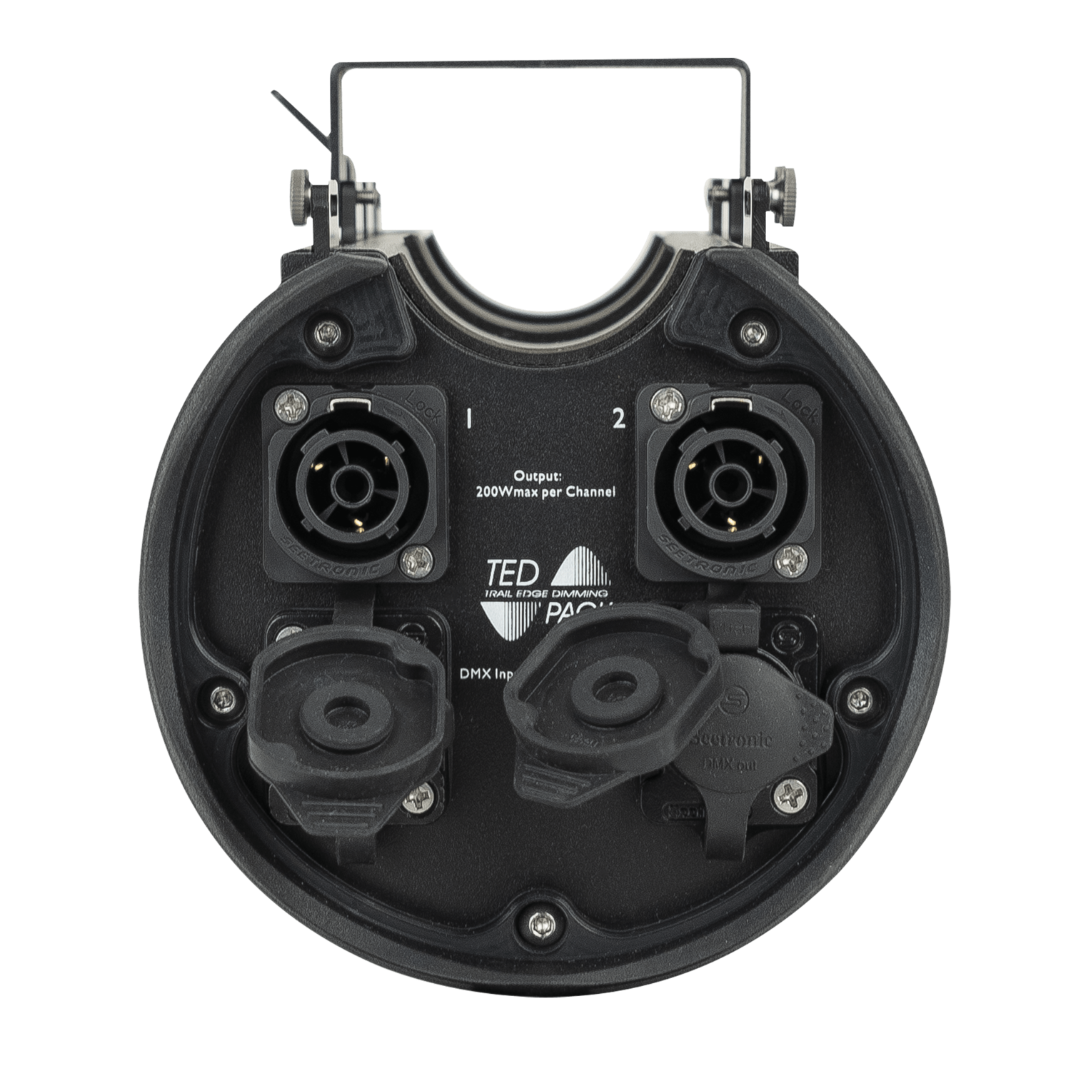 Lo Showtec TED Pack IP è un dimmer leading e trailing edge da 500 W a 2 canali con grado di protezione IP65 per uso esterno temporaneo. Dispone di modalità dimmer, switch e FX, è compatibile con RDM ed è dotato di robusti connettori Seetronic. Le uscite sono indipendenti dal carico collegato e possono essere utilizzate con LED e lampade a incandescenza fino a 2 A suddivise sui due canali. Il TED Pack IP utilizza i MOSFET per attenuare l’uscita e può essere commutato tra l’attenuazione leading edge e trailing edge. La modalità Special FX offre un canale di sicurezza che impedisce l’attivazione involontaria, che può essere utile per controllare sparacoriandoli, cannoni, sistemi di caduta, ecc. L’unità può essere controllata manualmente e via DMX e RDM.