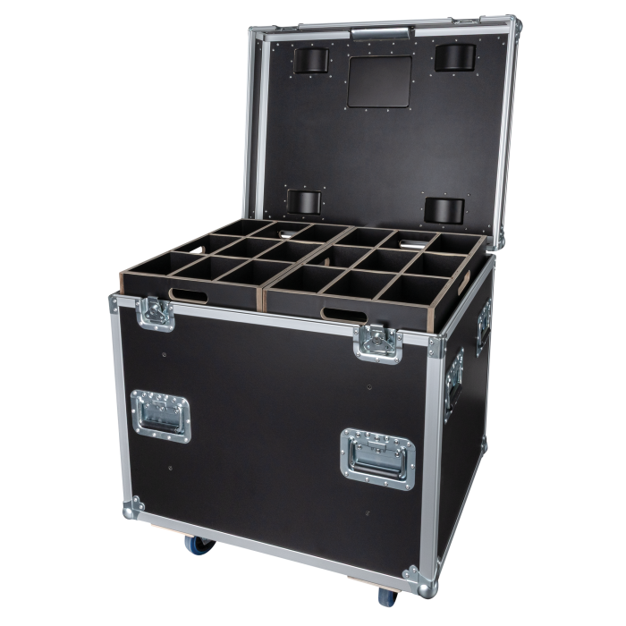 Realizzato in compensato di prima qualità da 9 mm e dotato degli affidabili componenti Penn Elcom, questo flight case è costruito per resistere alle sollecitazioni dei frequenti spostamenti e all’uso intenso. Quattro ruote da 100 mm con freno assicurano una mobilità fluida e un posizionamento sicuro, mentre due maniglie a molla su ciascun lato offrono una presa comoda per il sollevamento e la movimentazione. Quattro piatti di impilamento consentono di impilare in modo sicuro più flight case senza il rischio che si spostino o rotolino.