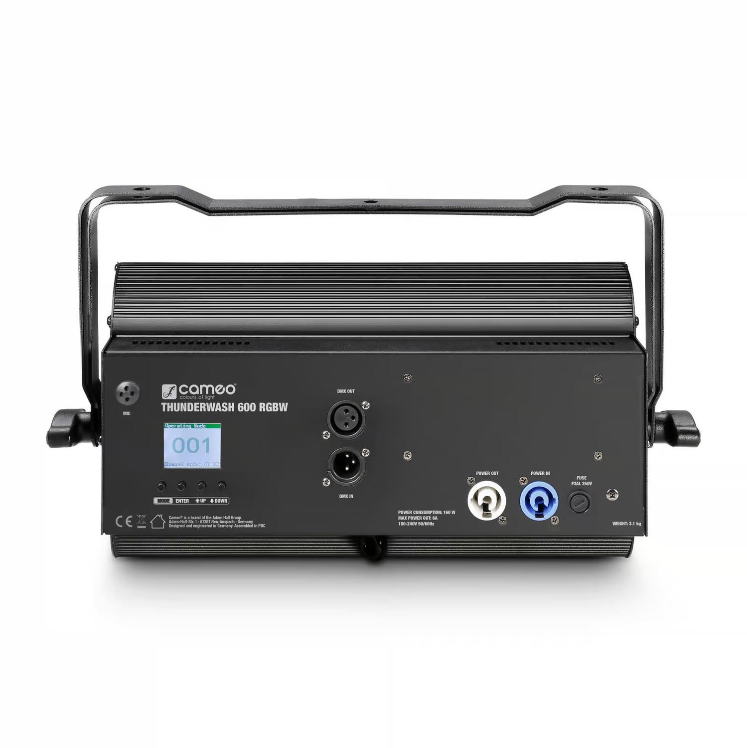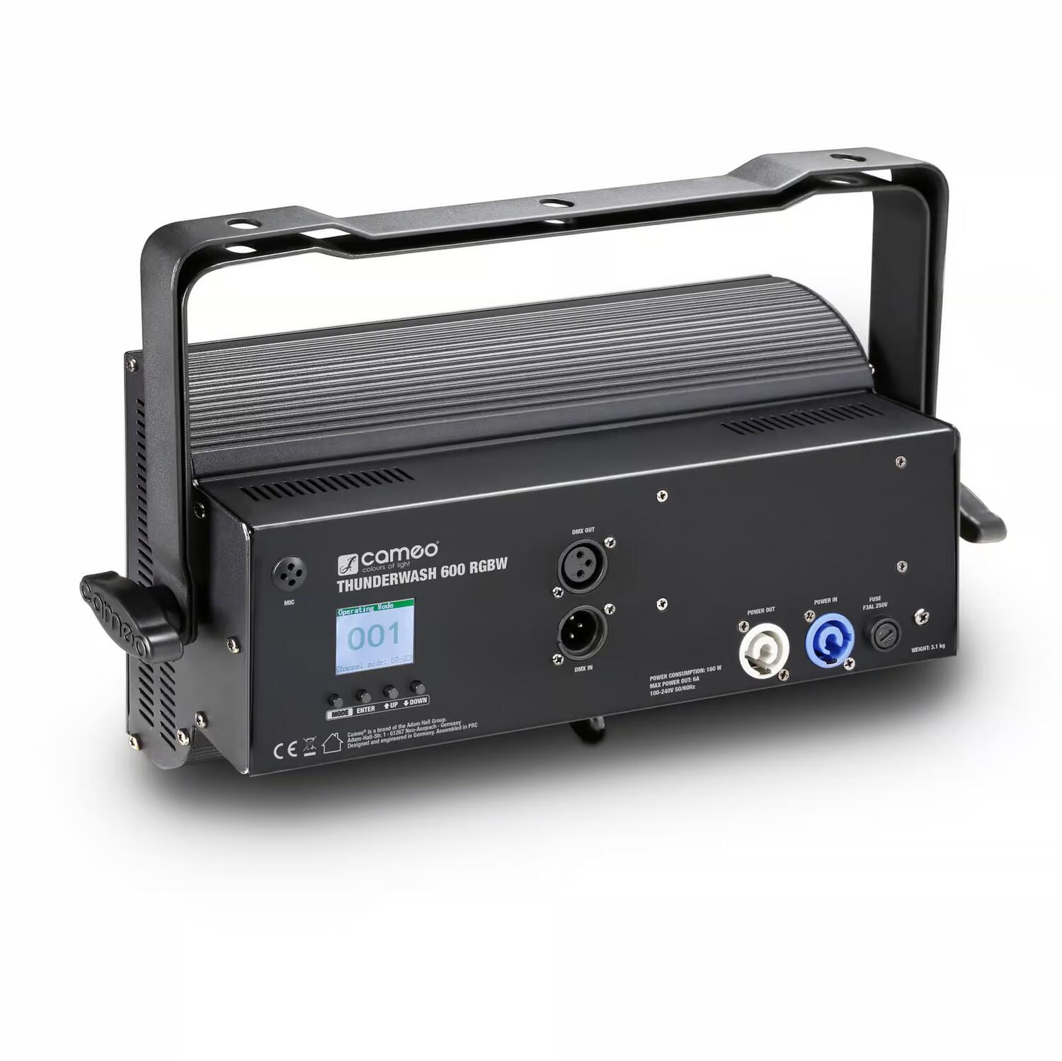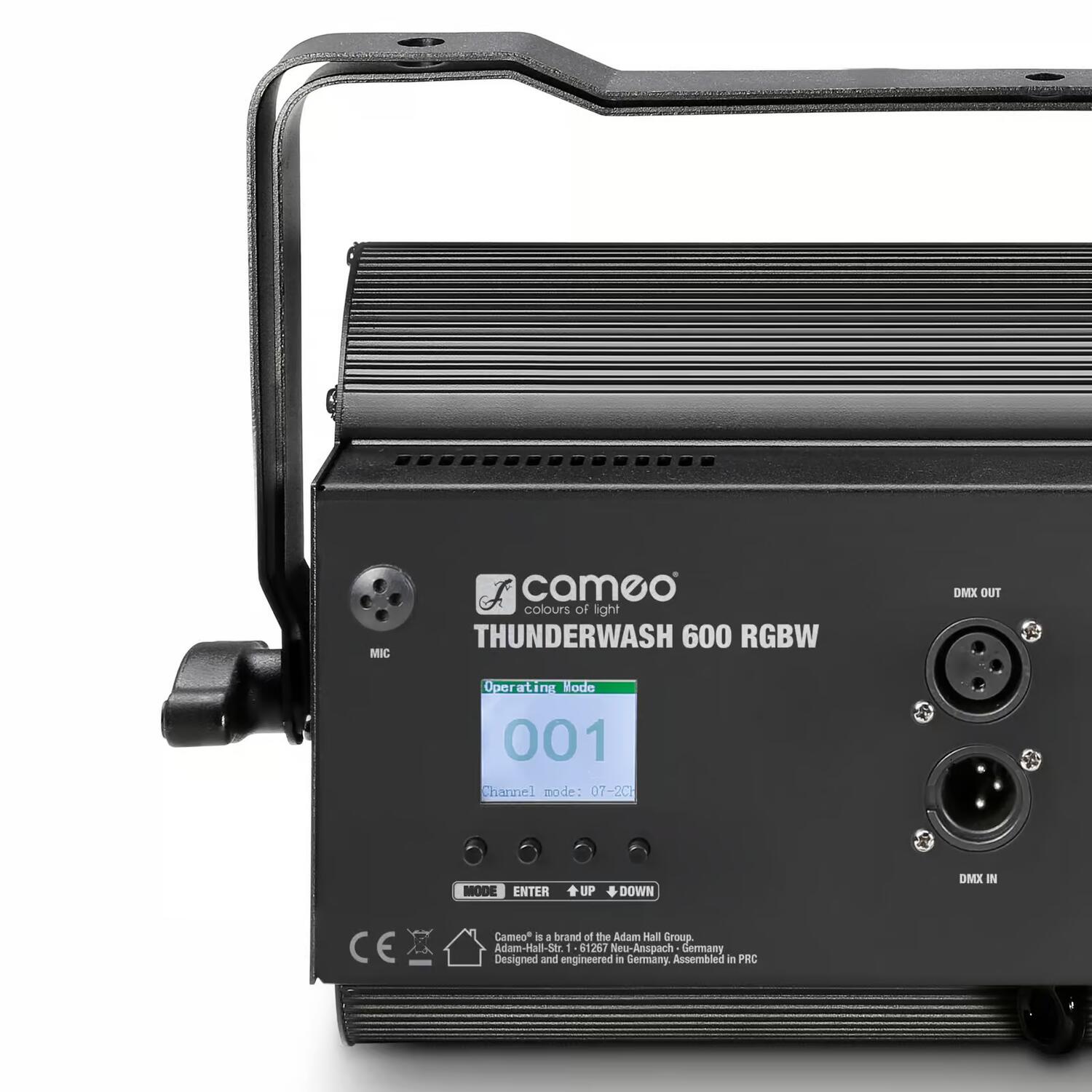Per la sua elevata potenza luminosa di 6.700 lm e l'ampio angolo di emissione di 100°, Thunder Wash 600 RGBW è dotato di un totale di 648 LED SMD. Può essere controllato via DMX in 9 diverse modalità o utilizzato come stand-alone, master e slave. Oltre ad impostare la frequenza e la durata di lampeggio, Thunder Wash 600 RGBW consente una regolazione uniforme. Inoltre, per il controllo del suono viene utilizzato un microfono integrato.