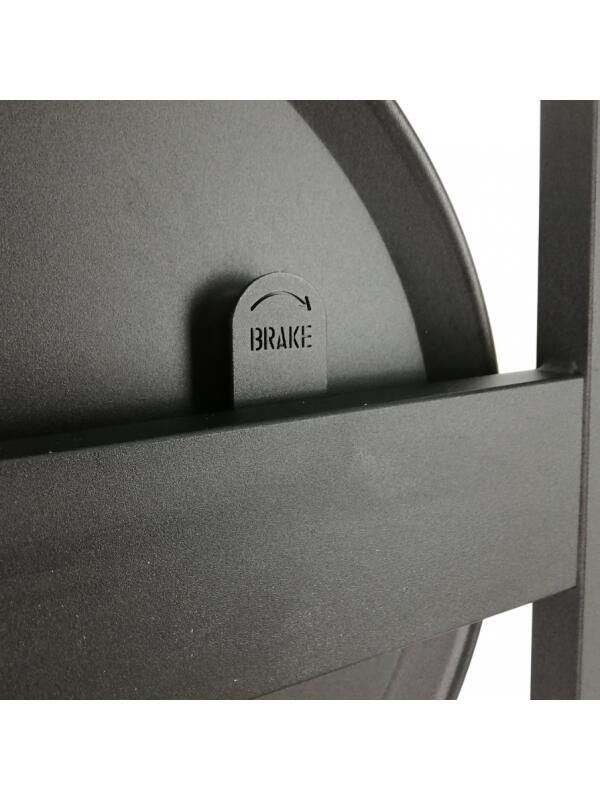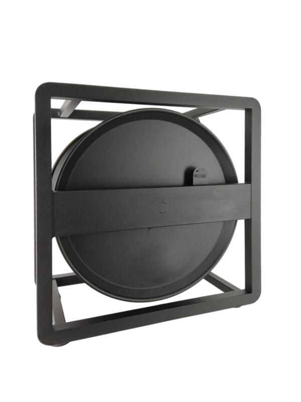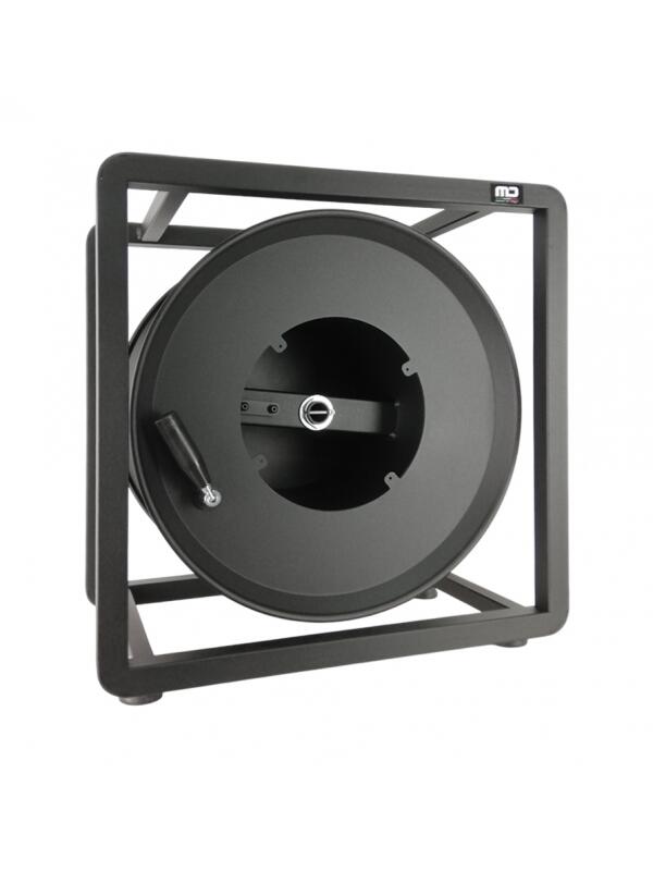 Avvolgicavo in metallo impilabile interamente realizzato in metallo, dotato di freno a frizione. Versione con telaio che permette la sovrapposizione di più avvolgicavo dello stesso modello. Possibilità di fissaggio connettori abbinando il tappo centrale (non incluso). Dimensioni tamburo D=40 cm, d=20 cm, larghezza 17 cm. Colore nero goffrato