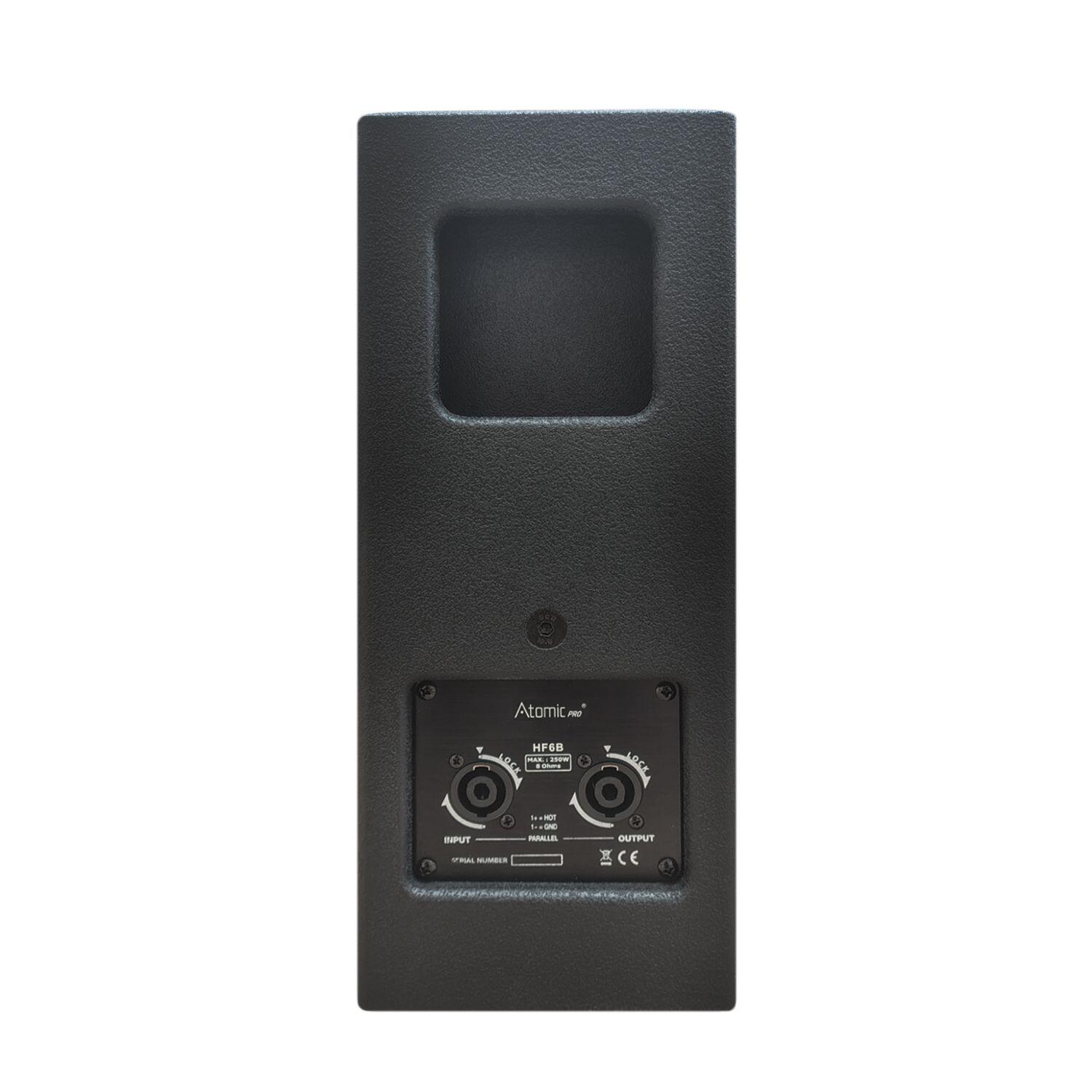 La cassa Atomic Pro HF6, in questa versione con finitura nera, è un diffusore passivo a due vie con corpo in legno in grado di produrre una pressione sonorafino a 95dB, con 200W di potenza.