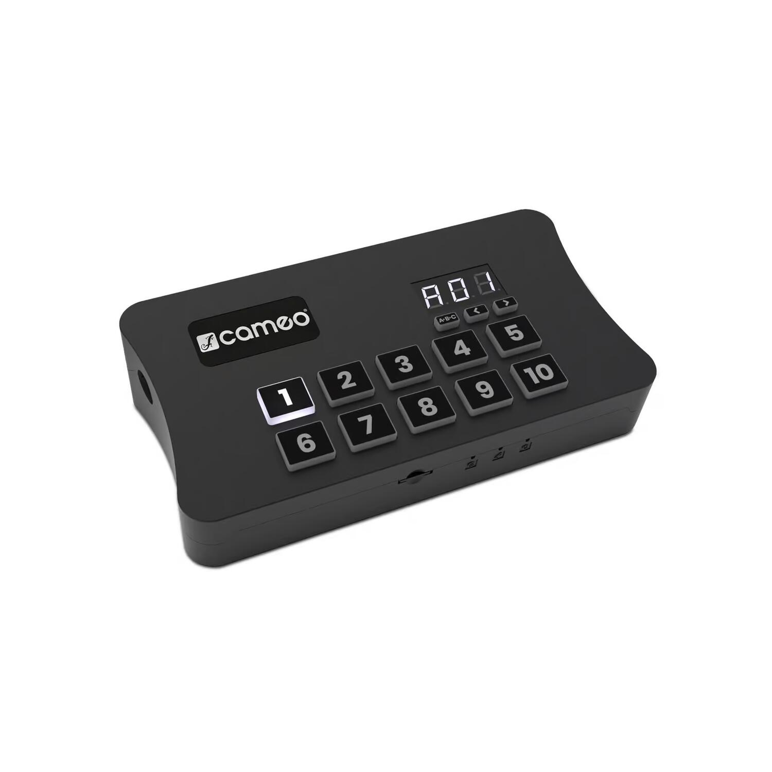 Con l'interfaccia Cameo DVC CUE e il relativo software Cameo powered by Daslight, i dispositivi di illuminazione compatibili con DMX possono essere comodamente controllati da PC o Mac. Nella modalità live o stand-alone, l'interfaccia plug and play offre due universi DMX512 ampliabili su quattro universi e, quindi, 2048 canali DMX. L'interfaccia presenta una porta USB-C per l'alimentazione e il collegamento al computer, quattro uscite DMX a 3 poli e una porta Ethernet per il controllo esterno. Per l'uso senza computer, in modalità stand-alone, è possibile salvare delle scene preprogrammate su una carta microSD e richiamarle direttamente sull'interfaccia tramite dieci tasti retroilluminati. Il pulsante ABC consente di navigare tra cinque zone, i tasti freccia tra 99 scene. Nella modalità di funzionamento stand-alone si utilizza un alimentatore USB standard da 5 V.