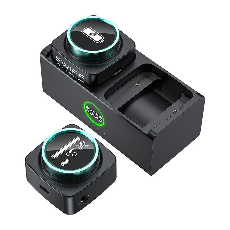 Un display dello stato sul ricevitore, collegato all'interno della manopola ad anello del volume, ampio e facilmente manovrabile, fornisce le informazioni principali durante l'uso: stato di carica della batteria, qualità della ricezione, volume, canale, mute ecc. Una porta USB-C permette di ricaricarlo in maniera tradizionale, ma nella maggior parte dei casi lo farà tramite il trasmettitore. Sul retro del ricevitore è presente una clip per agganciarlo alla cintura o alla tasca.