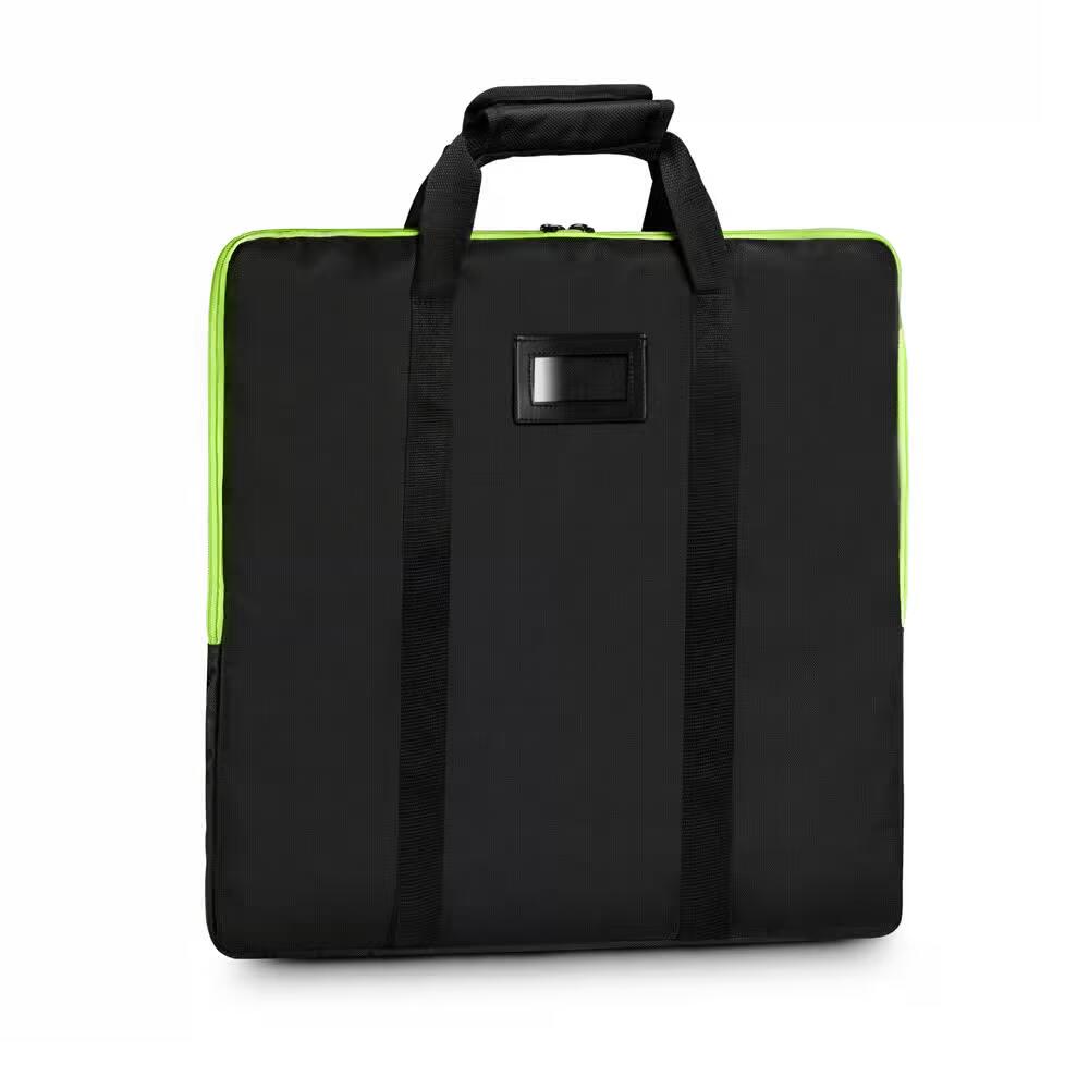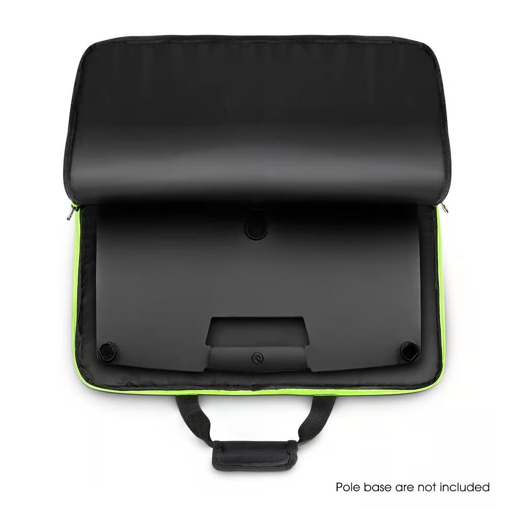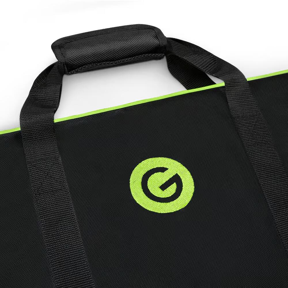Questa robusta borsa di trasporto imbottita in nylon balistico 1680D impermeabile è realizzata appositamente per la piastra di ancoraggio quadrata (563 x 563 mm) del supporto per luci Gravity GLS331B. Dispone di due cinghie con morbida applicazione in velcro, una robusta cerniera doppia e una finestra trasparente per etichette.