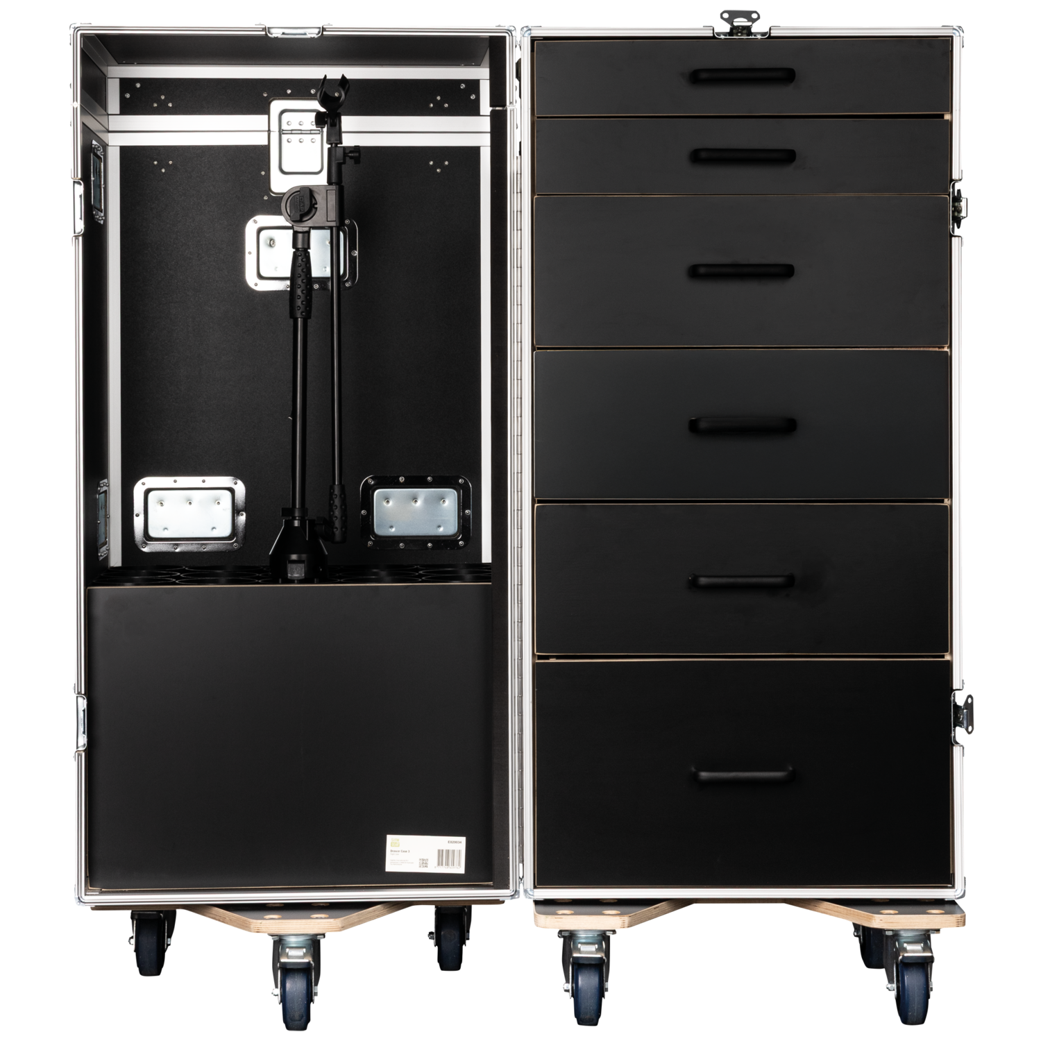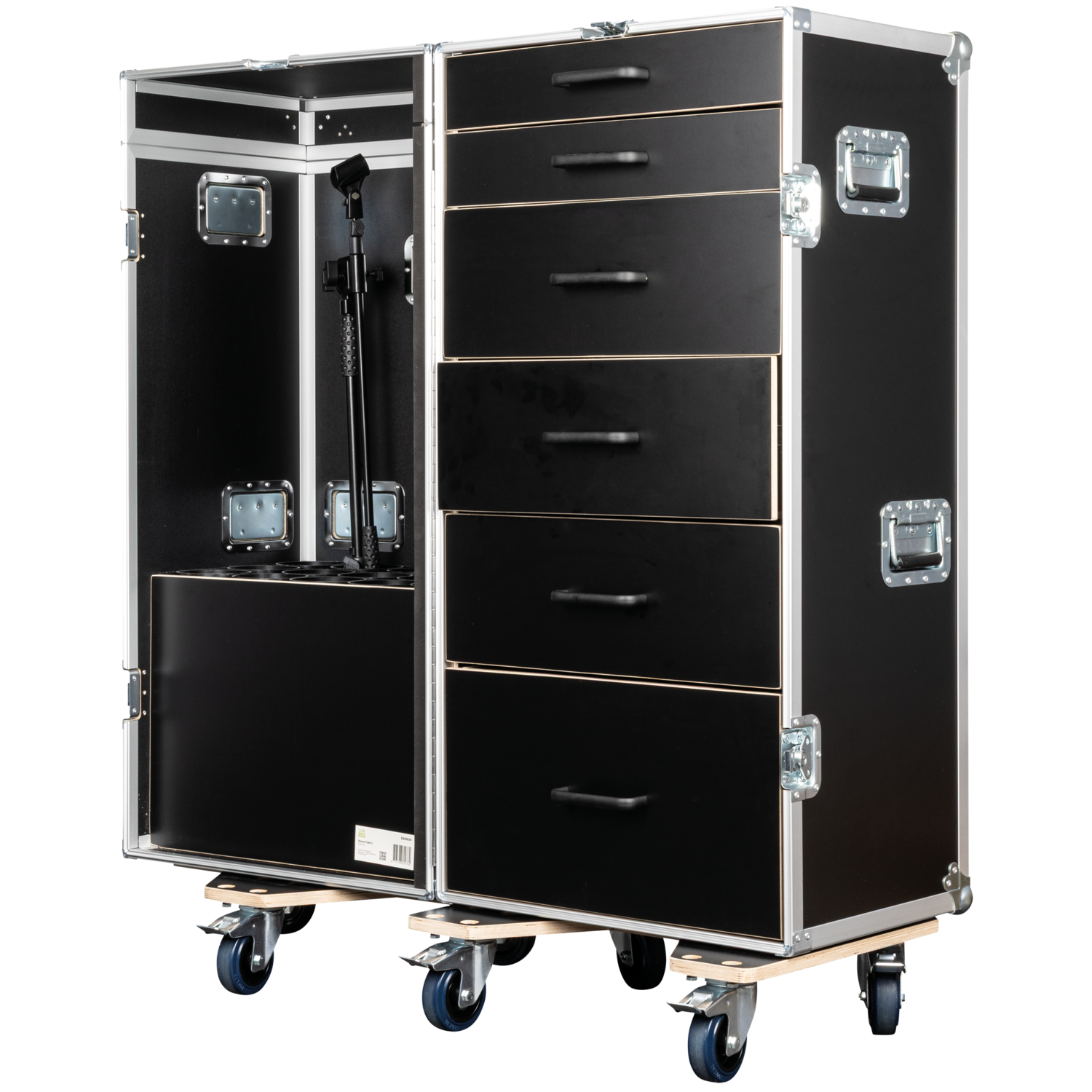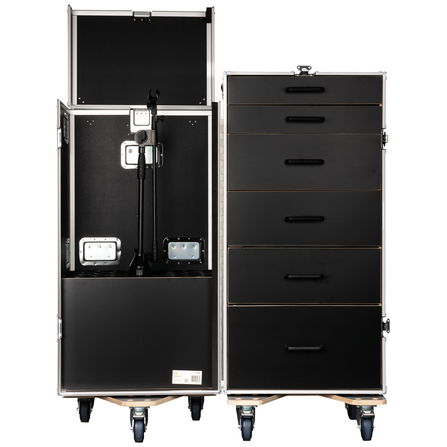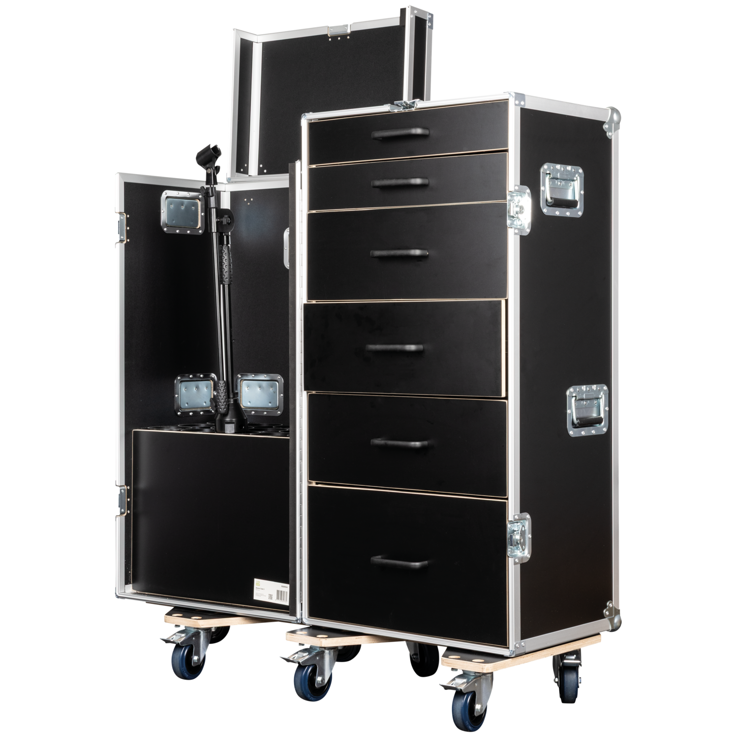 Il Drawer Case 3 di Showgear è un flight case alto e multifunzionale, progettato per i professionisti che hanno bisogno sia di uno stoccaggio strutturato che di un trasporto sicuro delle aste microfoniche. Dispone di sei cassetti nella sezione posteriore, ideali per organizzare strumenti, accessori e piccole attrezzature, e di uno scomparto anteriore apposito che contiene in modo sicuro fino a 15 aste microfoniche in posizione verticale.