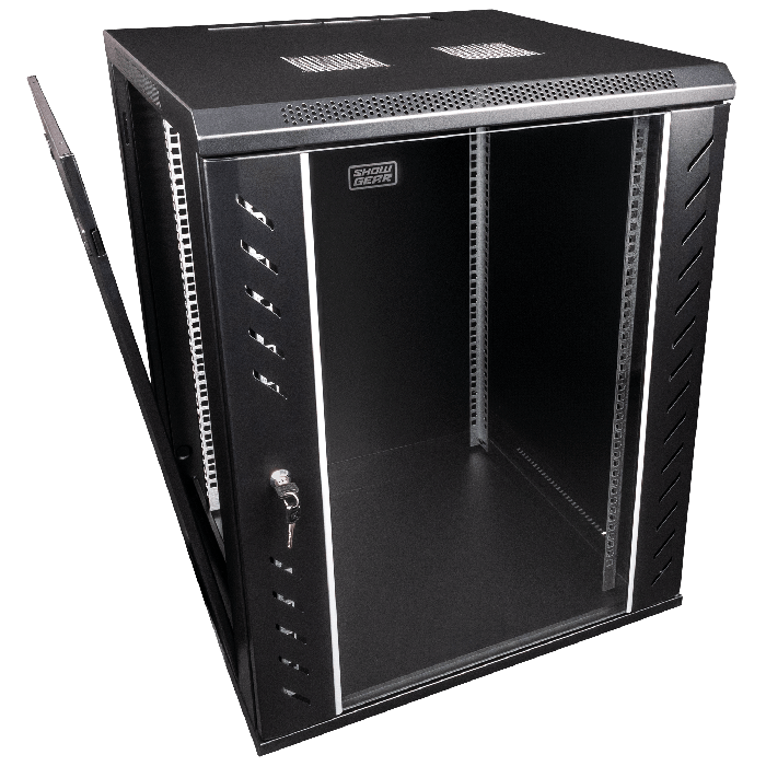 Lo Showgear RCA-WMF-15 è un rack a parete 19" con chiusura a chiave, altezza di 15 unità e dotato di due griglie di ventilazione, adatto per installazioni fisse. Questo case rack nero da 19 pollici ha un corpo in metallo con pannelli di vetro, solo per uso interno. L'RCA-WMF-15 viene fornito con un kit di installazione da 19", bulloni e rondelle, dado a baionetta, chiave esagonale, chiavi e viti.