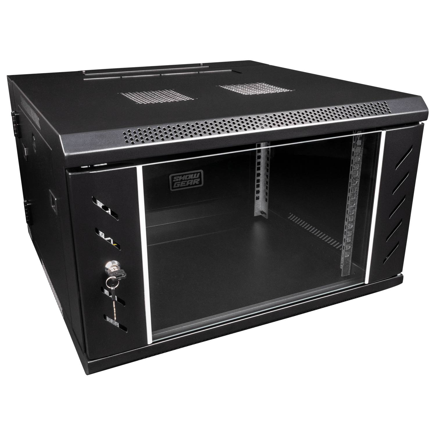 Lo Showgear RCA-WMH-6 è un rack a muro da 19" con serratura, con una profondità di 400 mm (15,8") per i pannelli di connessione e un'altezza di 6 unità rack, adatto per installazioni fisse in location indoor. Dotato di una chiusura a cerniera sul pannello posteriore e di pannelli laterali rimovibili, vi permetterà di lavorare facilmente sui pannelli di connessione dal lato o dal retro dell'unità. L'RCA-WMH-6 ha una porta in lamiera d'acciaio elegante e robusta con un pannello frontale in vetro temperato per durare e offrire prestazioni superiori. Viene fornito con un kit di installazione da 19", bullone e rondella, dado a baionetta, chiave esagonale, chiavi e viti.