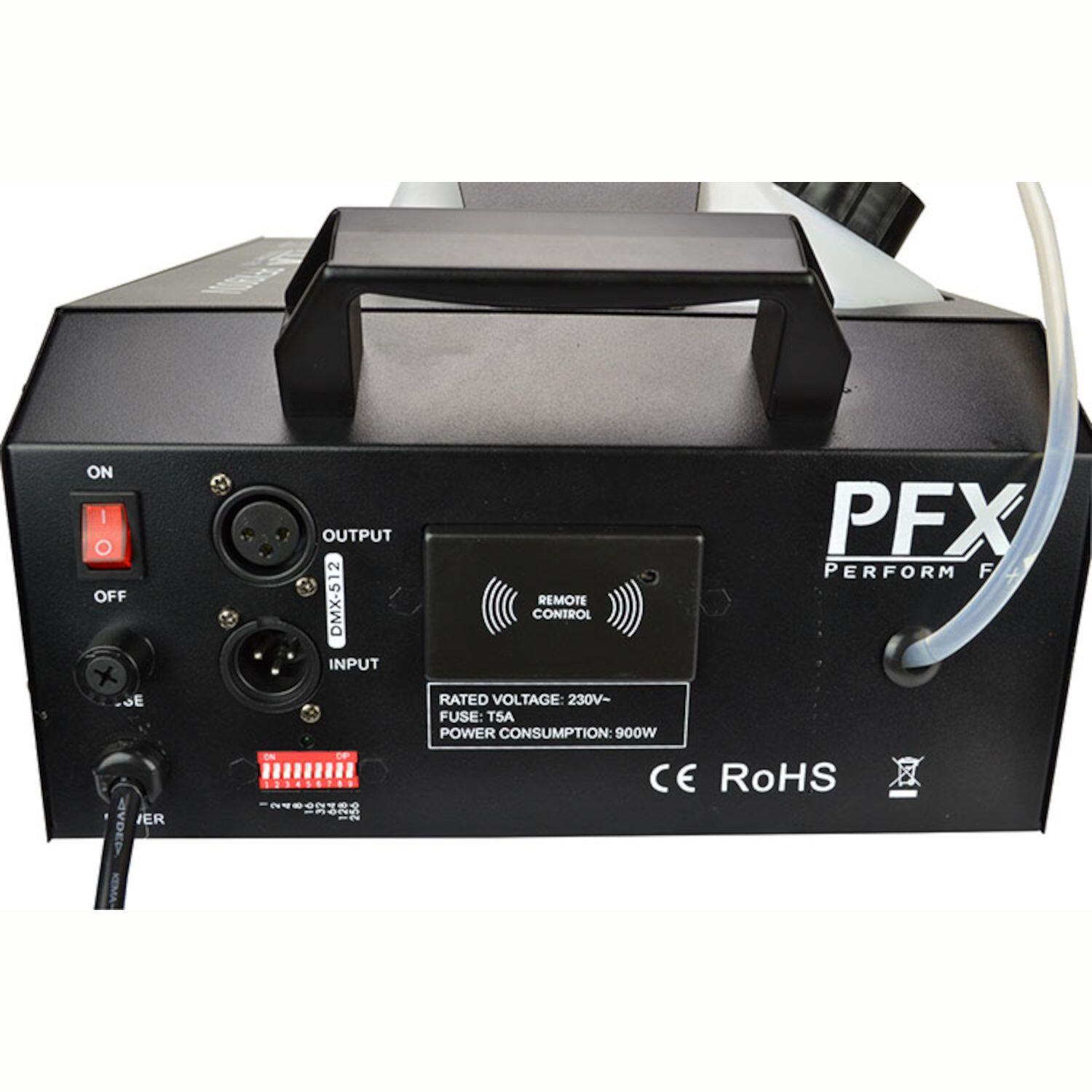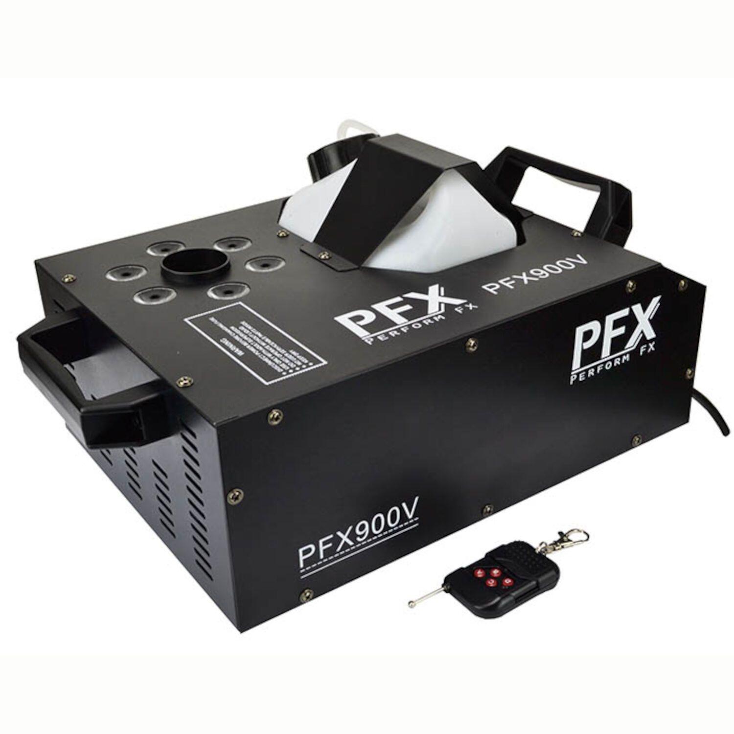 Macchina del fumo a getto verticale potente ed affidabile. PFX900V è un prodotto di grandissimo impatto scenico grazie al getto verticale di fumo ed ai led colorati che rendono l'effetto unico. La macchina può essere montata a terra per avere un getto dal basso verso l'alto, ma girando la posizione della tanica, anche in alto per avere un getto verso il basso. Il comando Wireless funziona fino a 25 metri e dotato di 4 pulsanti per l'accensione dei led.