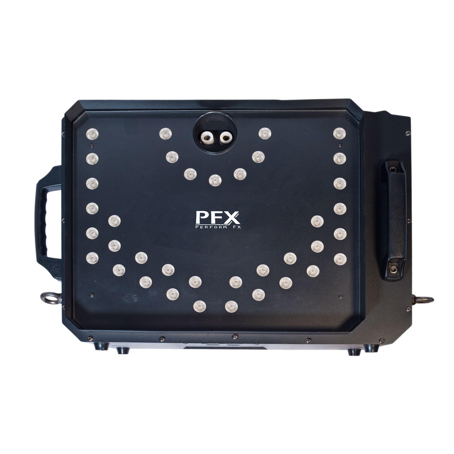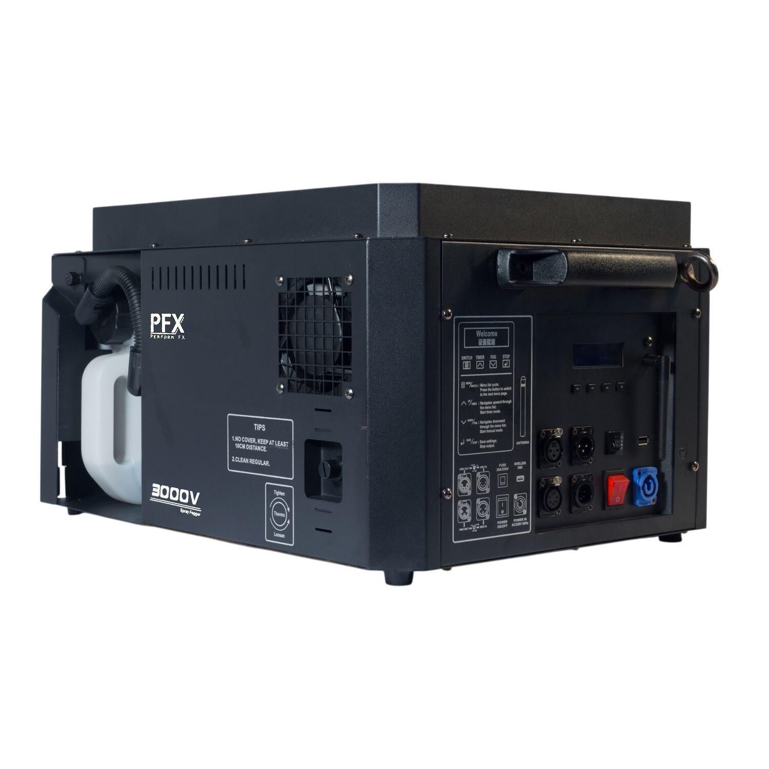 La PFX Monster 3000V è una potentissima macchina del fumo verticale con doppia caldaia per un totale di 3000 Watt, controllo Dmx e37 LED 4-in-1 RGBW. Il suo getto raggiunge i15 metri di distanza, sia quando viene installata rivolta verso l'alto che capovolta.