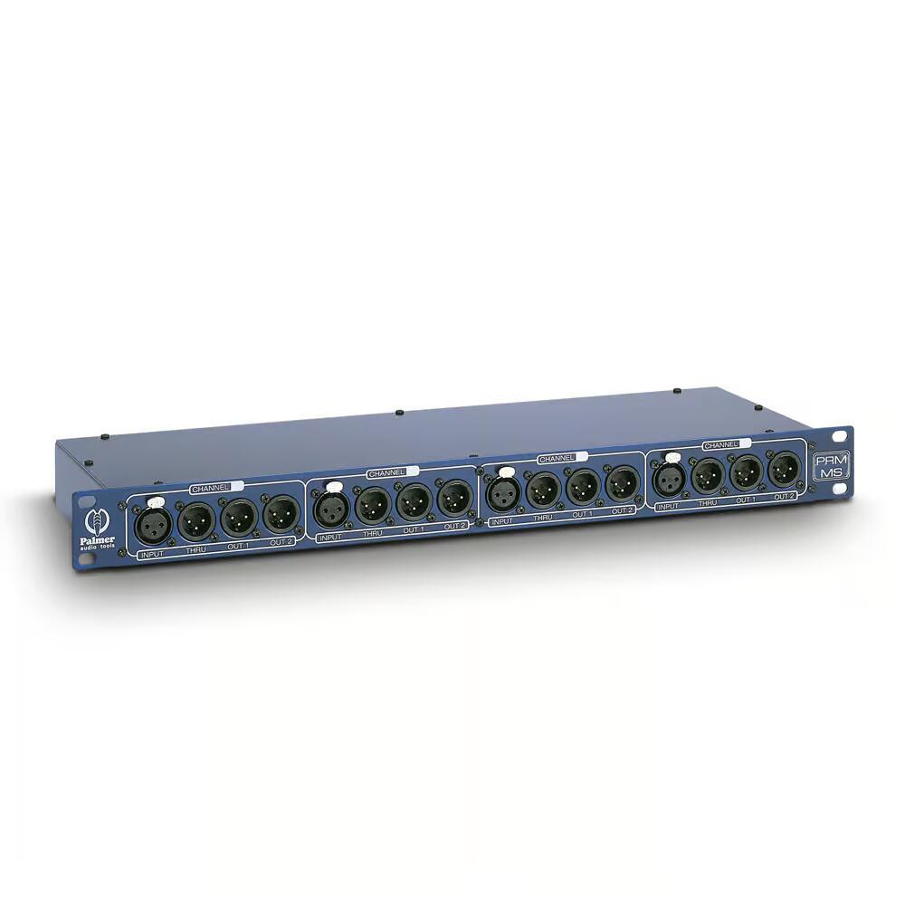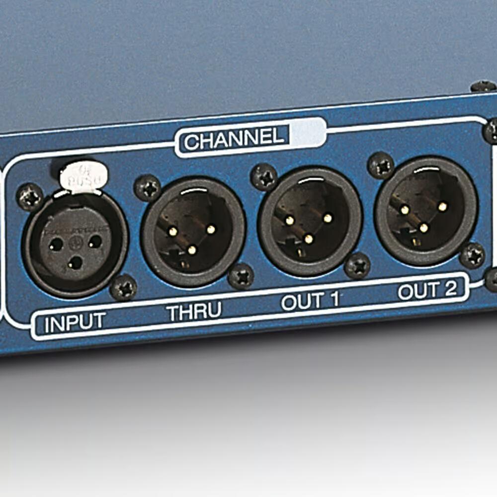Splitter passivo per segnali microfono. Un modulo possiede 4 canali. Ogni canale è dotato di un ingresso, di un'uscita collegata in parallelo per la connessione loop through di un'alimentazione phantom e di due uscite separate dal trasformatore dello splitter. Tutte le uscite sono inoltre isolate tramite resistenze.