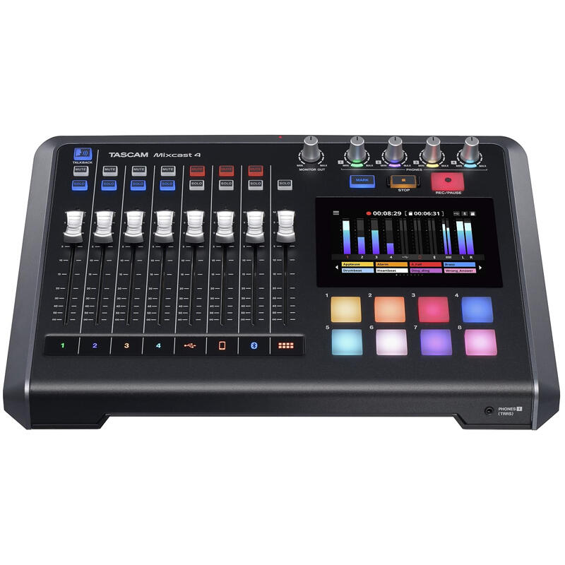 Dalla registrazione al missaggio dell'audio, Mixcast 4 ti offre un ambiente di produzione completo con molteplici funzioni utili come la registrazione diretta di 14 tracce su scheda SD; ingresso audio Bluetooth; un connettore di ingresso Aux per mixare e registrare facilmente conversazioni telefoniche (con mix-minus) o altre sorgenti sonore e connettività USB che consente all'unità di aggiungere suoni da un computer.
