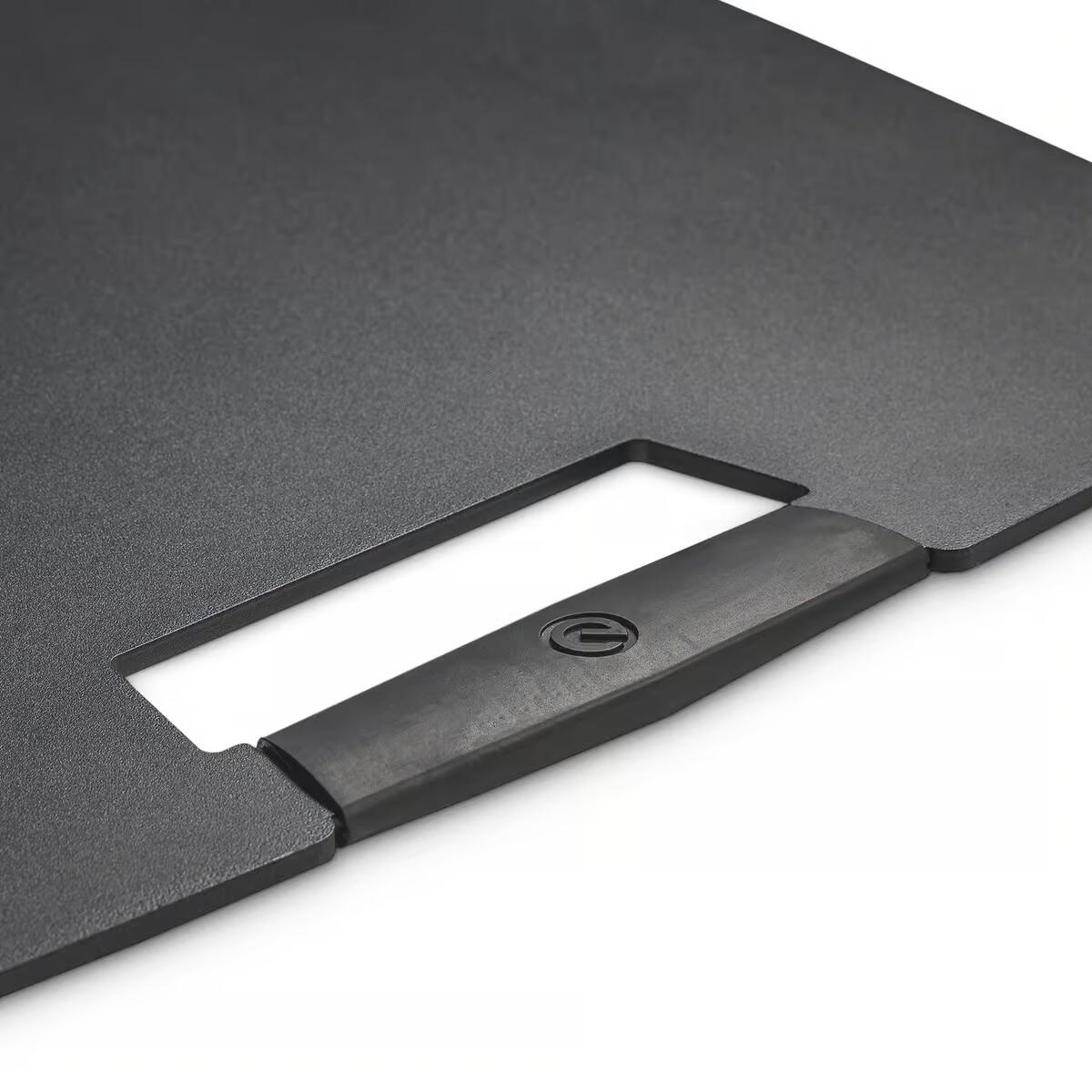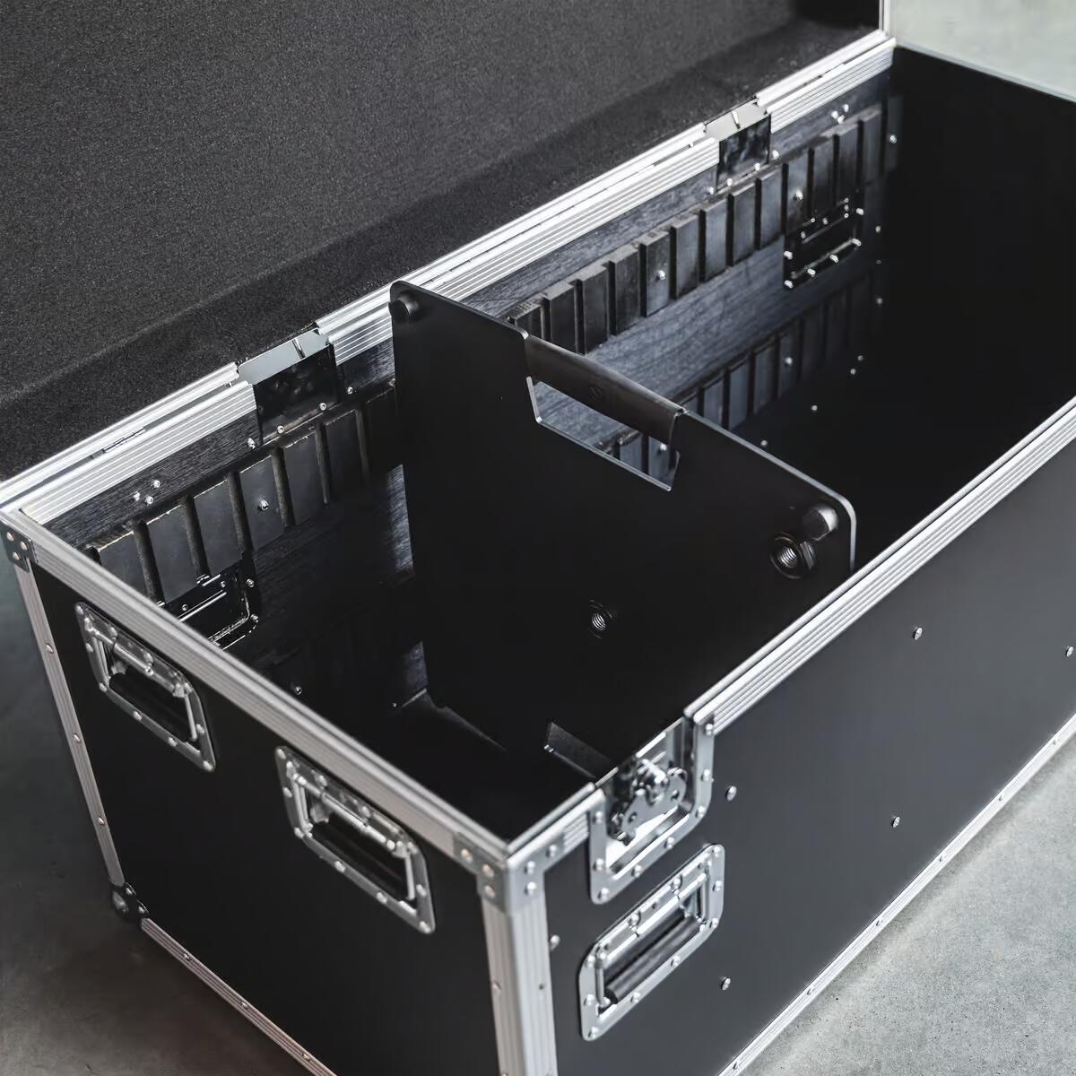 - L'ampia e robusta base in acciaio della serie Gravity Touring offre un appoggio stabile e sicuro. È progettata con tre filettature femmina M20 per adattarsi ai pali del supporto, anche in posizione decentrata. La base può essere utilizzata anche come divisorio nelle valigie Transflex.