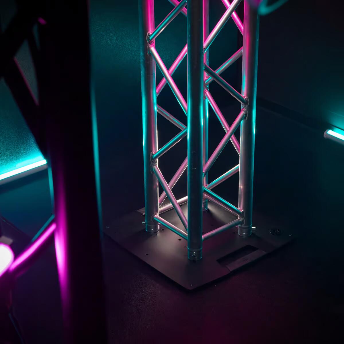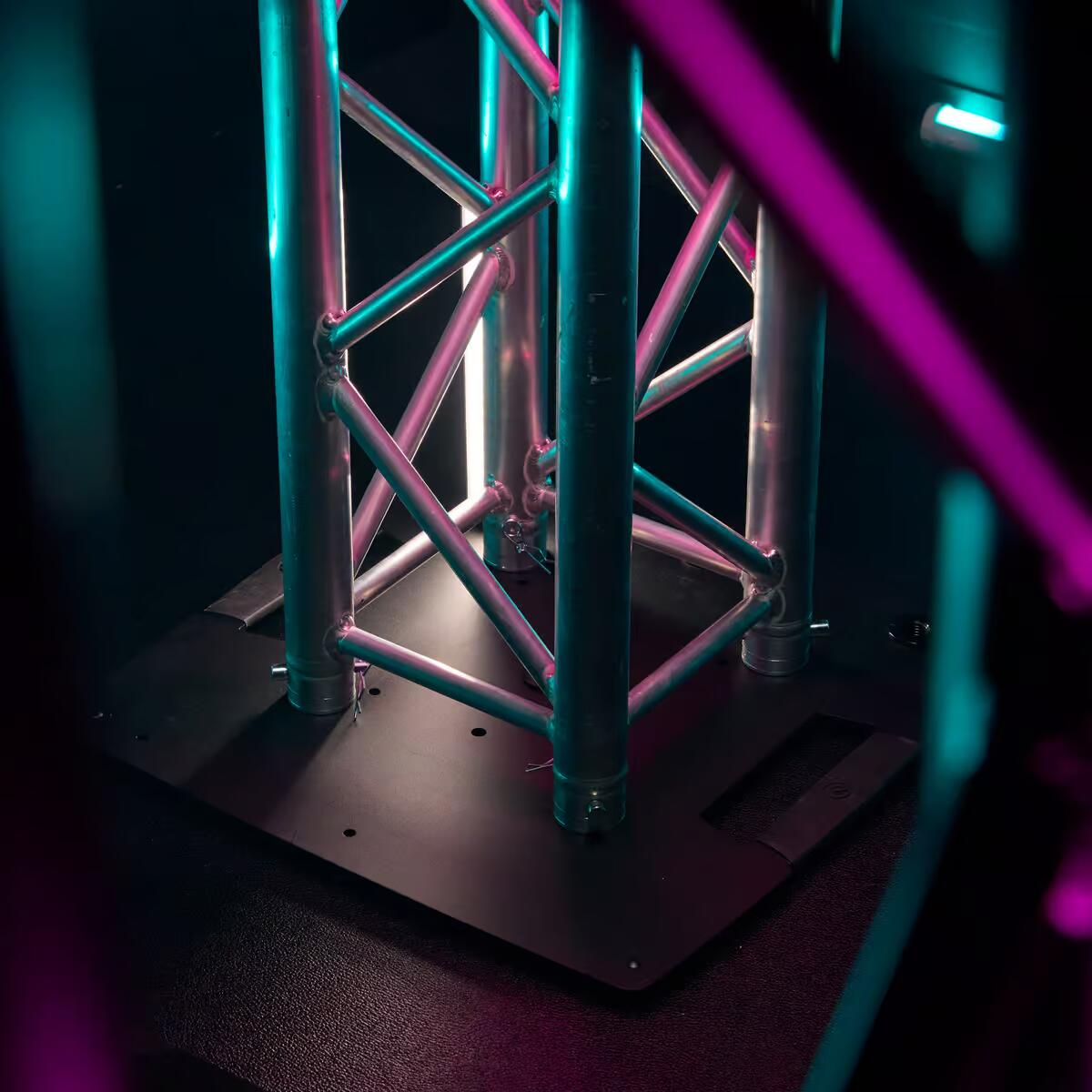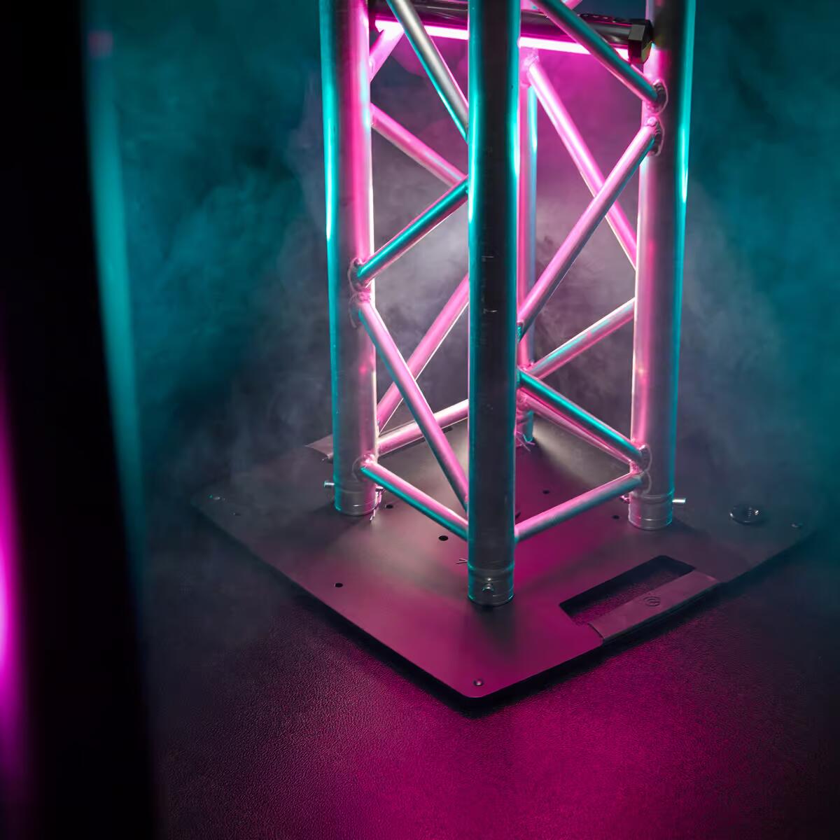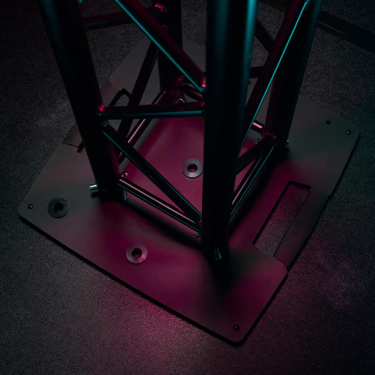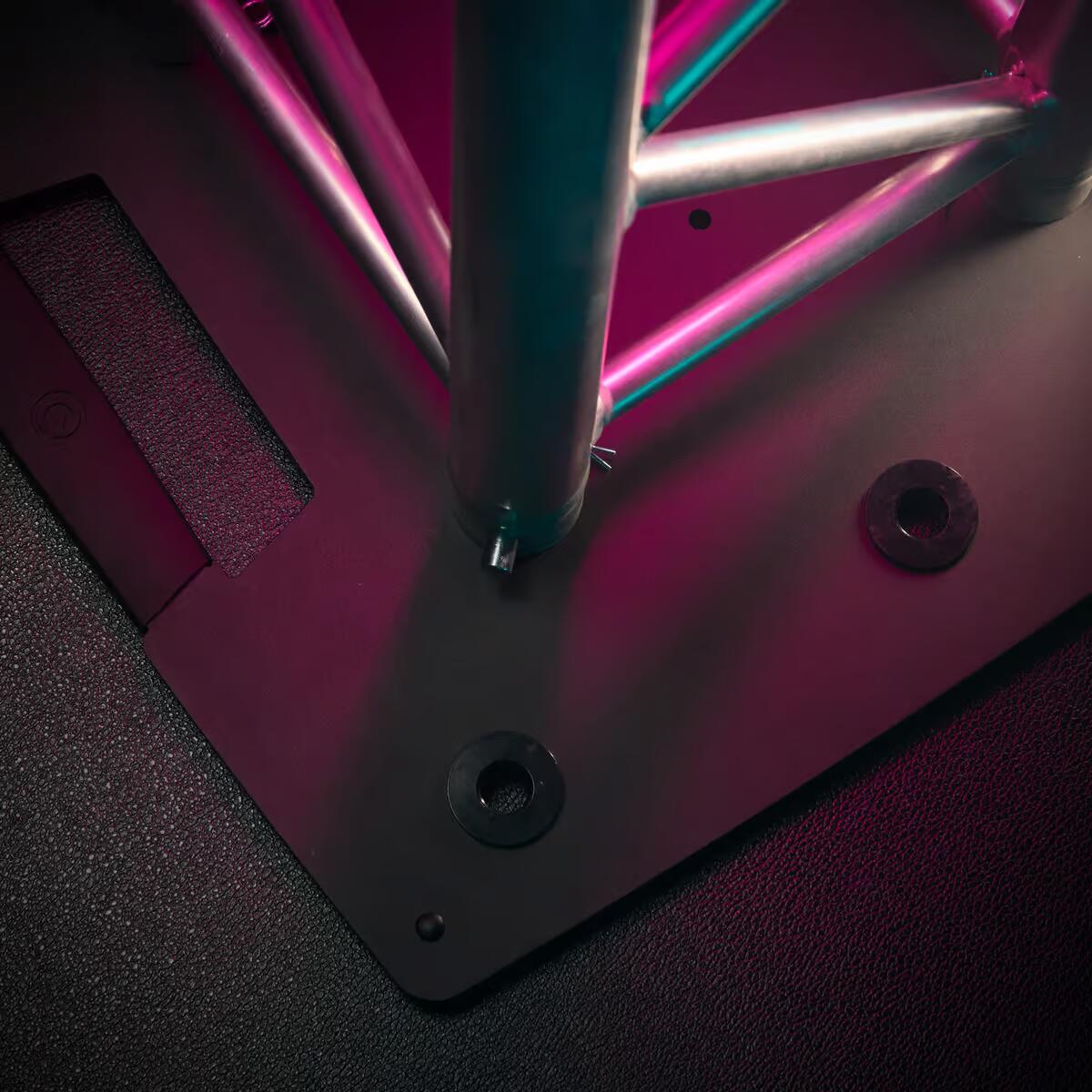 La base multifunzione Gravity® TWB 431 T B è un articolo della nota serie Touring. È realizzata in acciaio, ed è specificamente disegnata per l’impiego in ambito professionale. Di formato ampio e resistente, garantisce un appoggio stabile e sicuro. L’opzione integrata che consente il montaggio a travatura facilita l’impiego dei sistemi delle serie dalla F21 alla F24 e dalla F31 alla F34, mentre tre filettature femmina M20 posizionate in modo eccentrico consentono di fissare variamente le aste. A questa versatilità si aggiunge la possibilità di utilizzare la base come divisorio nei flightcase Transflex, rendendola la scelta ideale sia per chi organizza eventi sia per le aziende di noleggio.