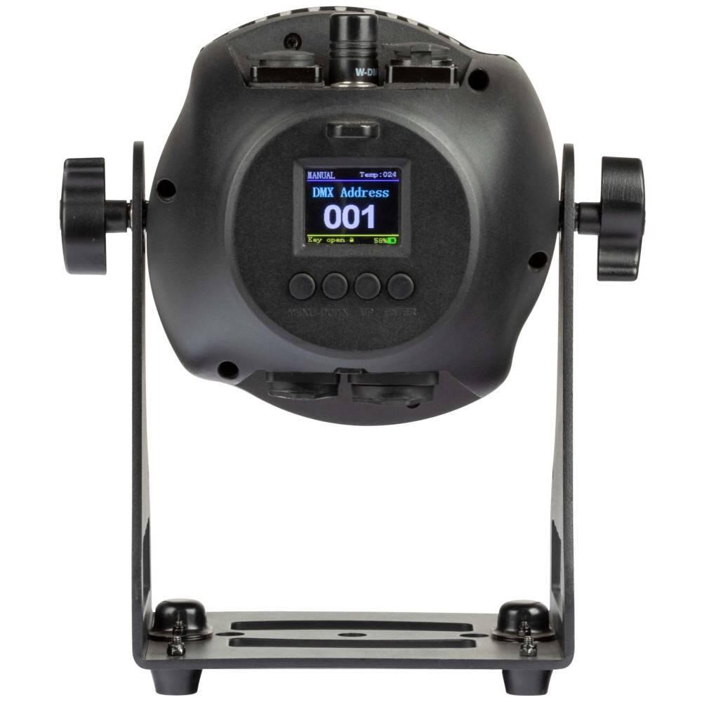 Controllo e programmazione | 5 configurazioni DMX disponibili: 2/3/5/8/11 canali Funzione Key lock con password per blocco display Controllo segnale USITT DMX 512 DMX wireless transceiver incorporato Controllo via Vision APP Modalità Master/Slave Modalità Static Color Modalità automatiche con 15 programmi selezionabili da display con regolazione della velocità Color mode con 50 macro colori e 11 macro bianco Sistema di calibrazione del colore Sistema di gestione della potenza 4 curve dimmer selezionabili Funzione lampada emergenza |